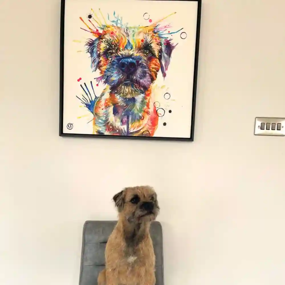 Transform your space with this luxury top of the range, framed canvas dog painting.