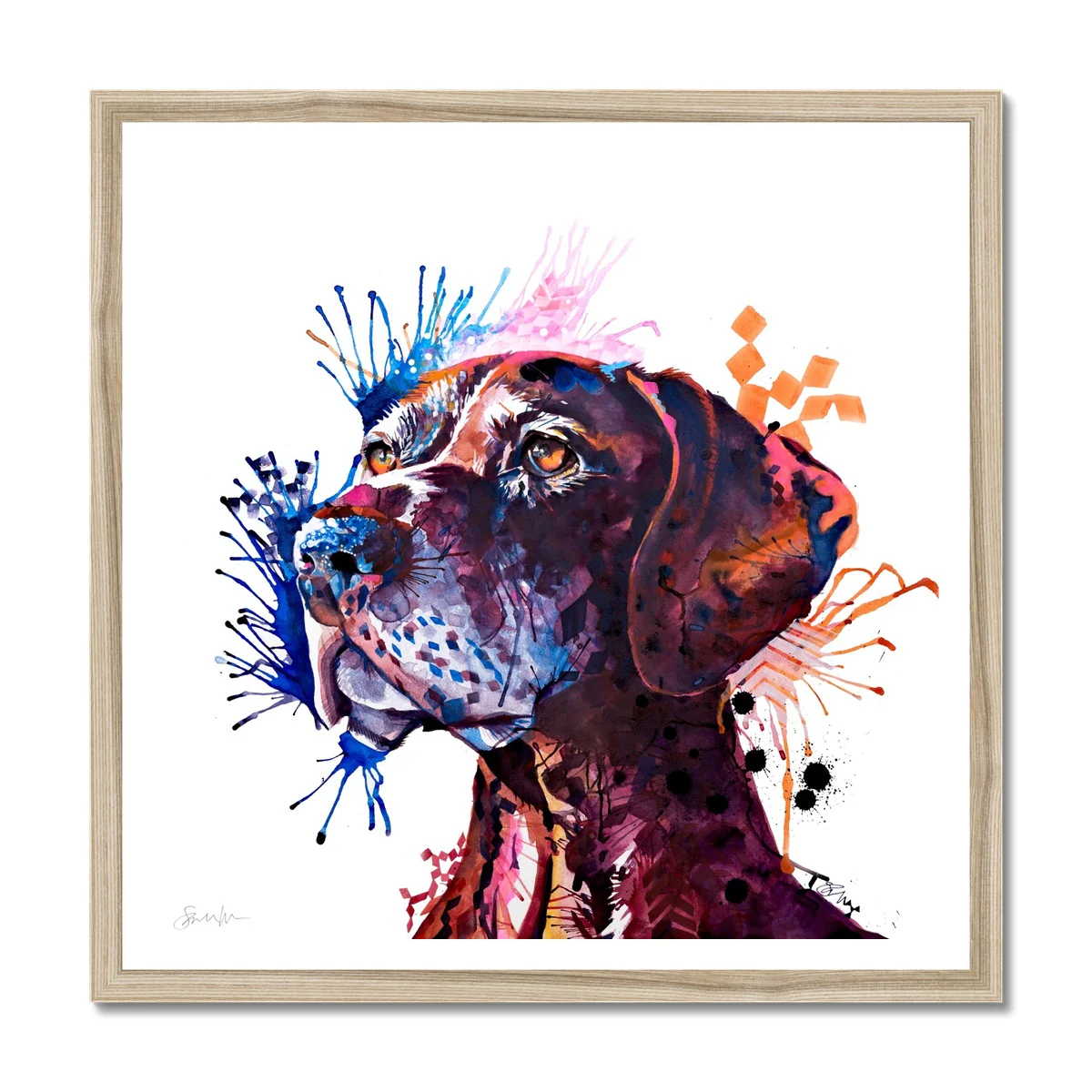 Bring some happiness to your room with this framed colourful dog print.