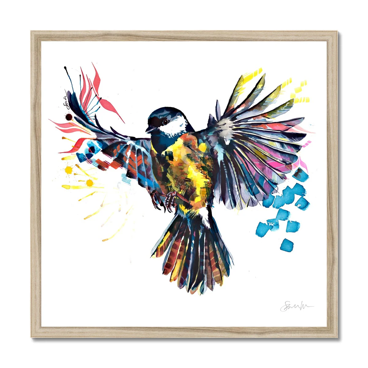 Bring a burst of happiness to your room with this framed colourful bird wall art.