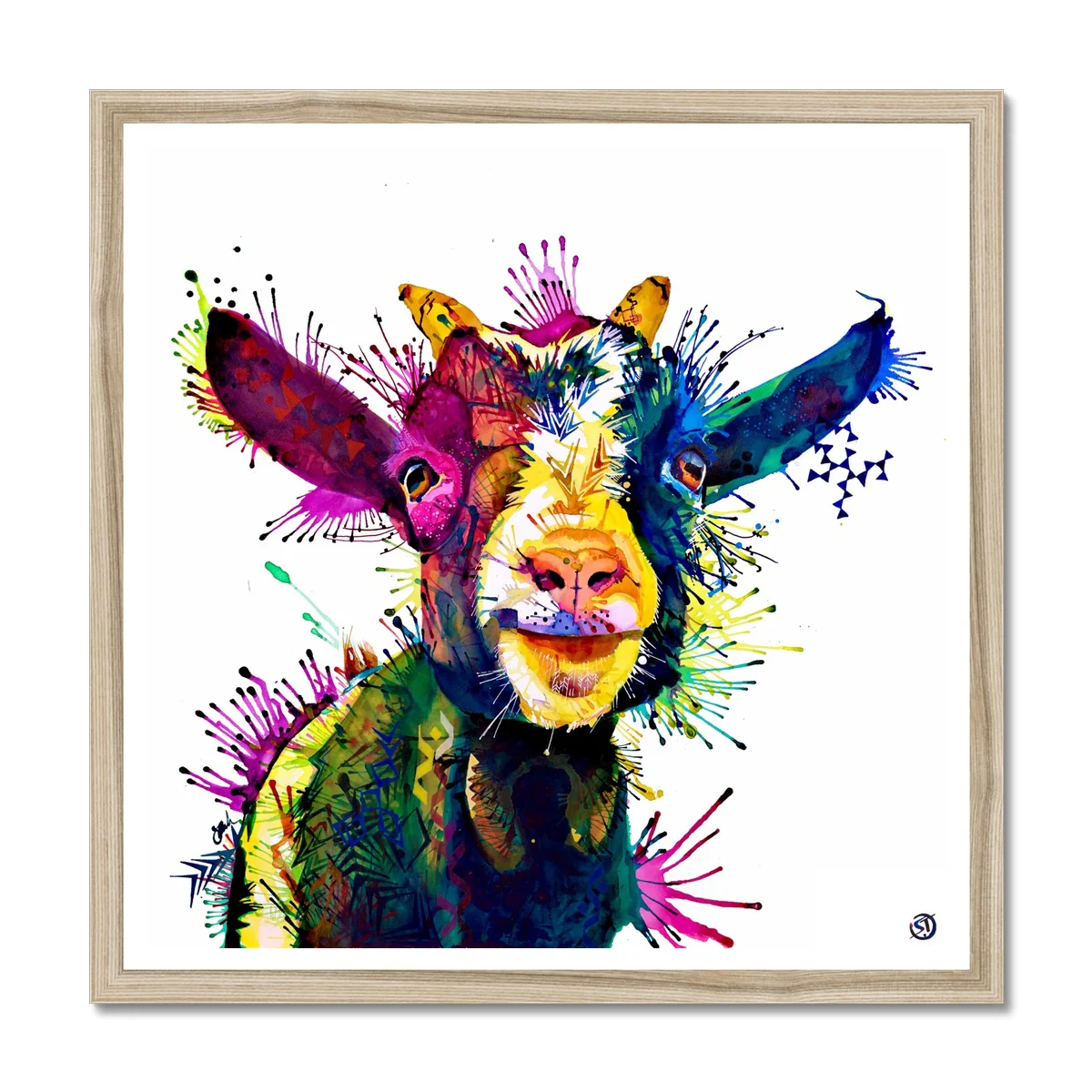 Bring a burst of happiness to your room with this framed colourful goat painting.